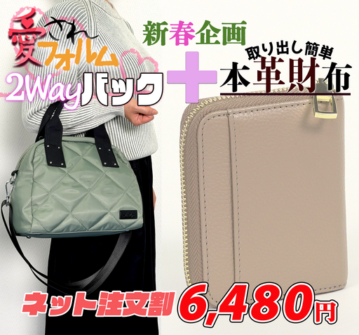 愛されフォルム2WAYバック +取り出し簡単本革財布セット【新春企画】