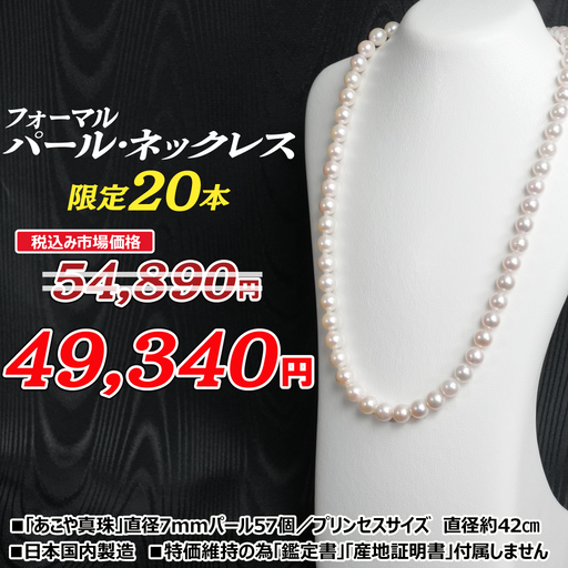 ねこねこ堂元の価格 ¥49,340 - 元の価格 ¥49,340元の価格¥49,340 (税込)¥49,340 - ¥49,340現在の価格 ¥49,340 (税込)| /在庫あり商品紹介映像 常温 送料無料 商品名 国産パールネックレス こだわりポイント 【在庫特別調整価格】国産あこや真珠使用▼伊勢の老舗パール問屋の逸品 製品情報 さりげない気品が感じられるサイズ直径7mmのパールを57個使用。...