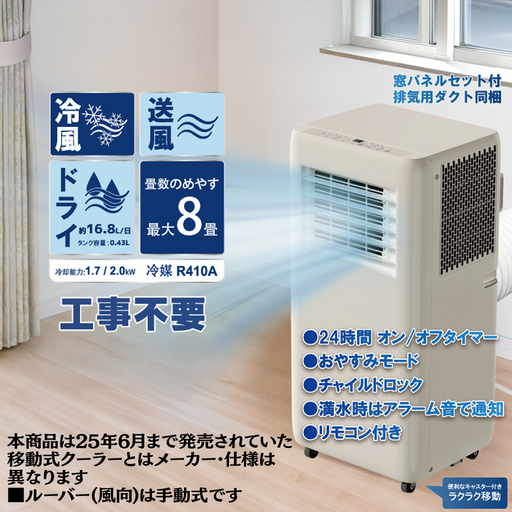 移動式クーラー【8畳】【白】ルーバー手動タイプ/【グレージュ】ルーバー手動タイプ